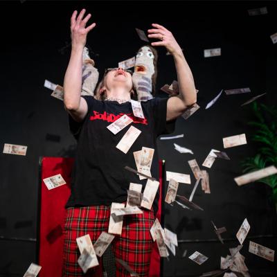 Vad gör man om man vill sätta upp en satirisk föreställning om svensk kulturpolitik men förgäves försöker finansiera sin idé? Man skaffar en mecenat. Hur det går kan man se på Folkan Teater måndag 4 maj.