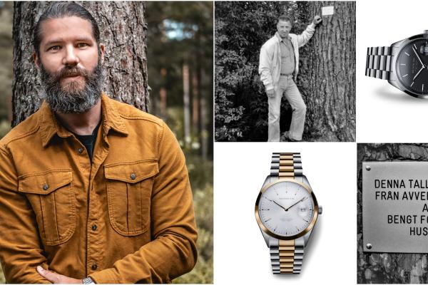 Det armbandsur i guld hans farfar fick för lång och trogen tjänst som skogshuggare inspirerade Hans Forsberg, uppvuxen i Husbyn, att designa sina egna. I dag väntar han på sin allra första leverans av klockor präglade av släkthistoria och naturen i Örnsköldsvik.