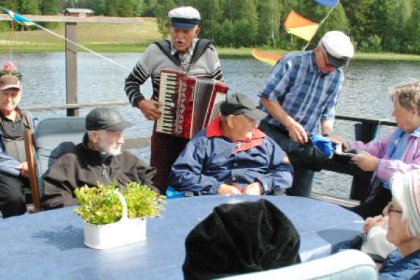 För femte året i rad tar Bosse Sundström, Mats Östman och Kjell O. Berggren med boende från Arnäsgården på ett sommaräventyr med flotte längs Stybbermarkssjön.