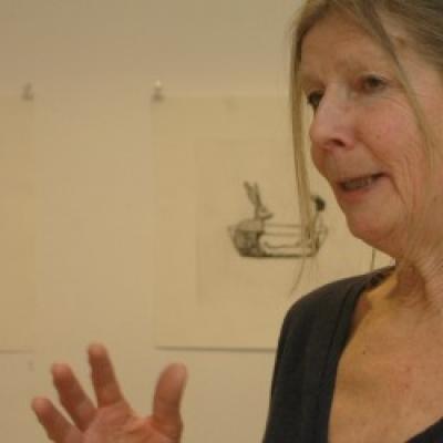 Grafiska blad med barn i lek. Umeåkonstnären Britt Hillbom ställer ut på Galleri Lokomotiv.