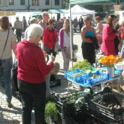 Andra lördagen med Bondens marknad på Stora Torget lockade mycket folk.