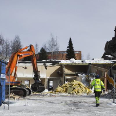 Gammalt blir nytt när före detta busstationen rivs för att göra plats åt en parkeringsplats. Rivningen började i fredags och kommer att hålla på senast fram till i slutet av maj.