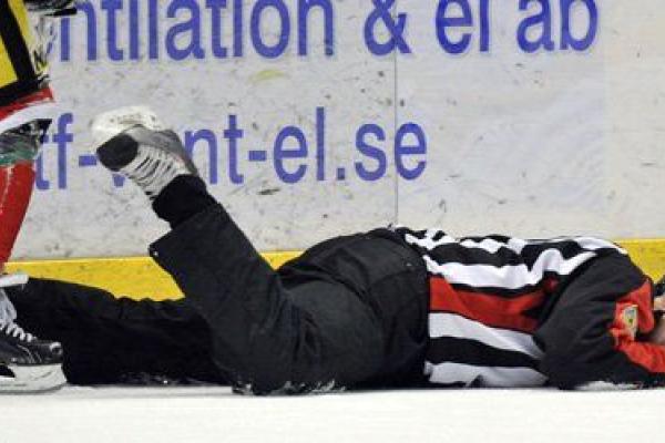 Gårdagens match mellan Modo och AIK var en väldigt lugnt match med få tacklingar. Den som kanske fick ta emot den tuffaste tacklingen av alla på isen var domaren Tomas Andersson som tacklades in i sargen av Per-Åge Skröder. Facit - ett brutet revben.