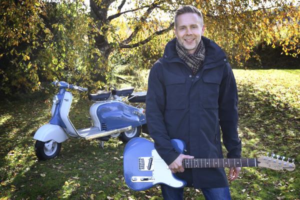 För 50 år sedan förpassades den till garaget och blev stående. Nu har Henrik Söderström färdigställt sin fars renoveringsobjekt; en stilren Lambretta från 1957 – komplett med gitarr.