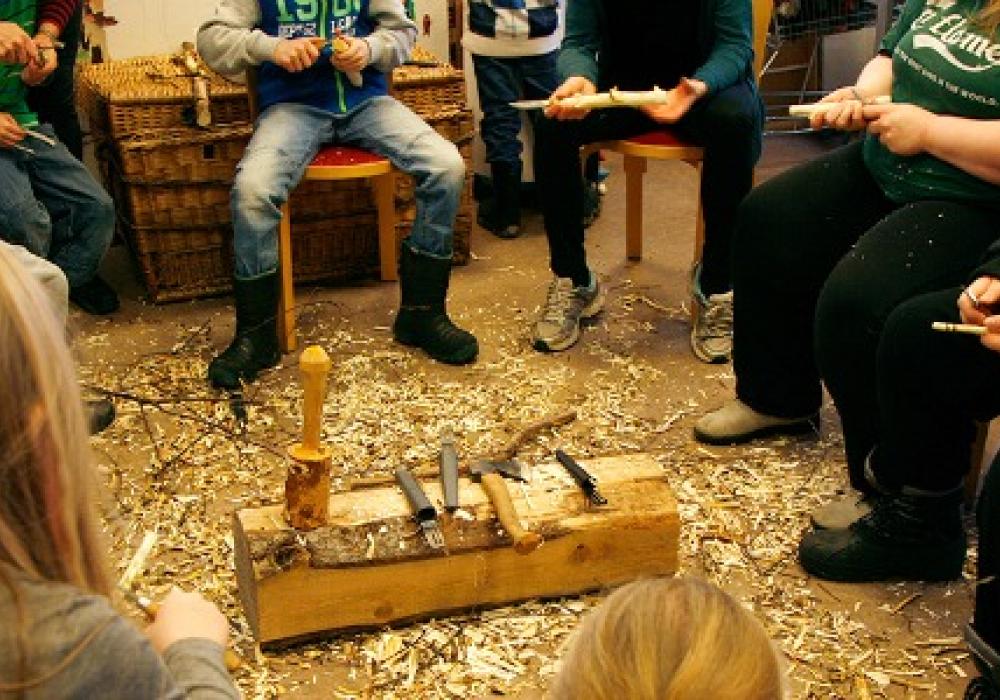 Aktiviteten var öppen för alla som ville delta och det gällde bara att välja en bra bit färskt trä, fatta tag i en kniv, sätta sig ned i ringen och börja tälja. Inne i Skaparverkstaden luktade det gott av träet och stämningen var varm och välkomnande. I ringen täljdes trollspön, blompinnar, krukväktare och annat kreativt och de som ville fick färgsätta sin kreation med akvarellfärg. Besökarna fick ta del av både goda täljtips och trevliga historier.