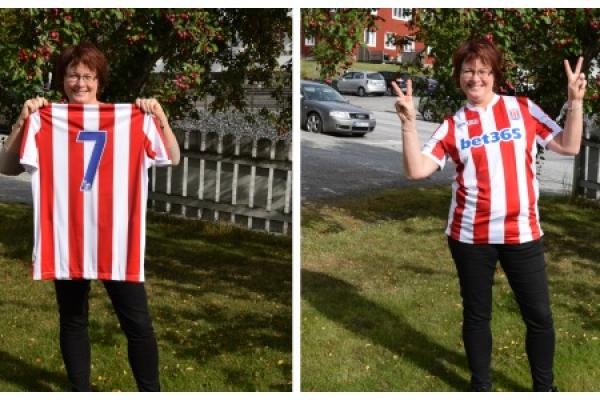 Hon var bättre än Toby på att tippa fotbolls-VM och förra veckan fick Marie Heléne Hardstaff ta emot sin specialvinst, nämligen en matchtröja. Eftersom vi fick veta att det är Stoke hon håller på så fick det bli en stoketröja. Och snart bär det iväg till Bet365 stadium när man möter Middlesbrough.