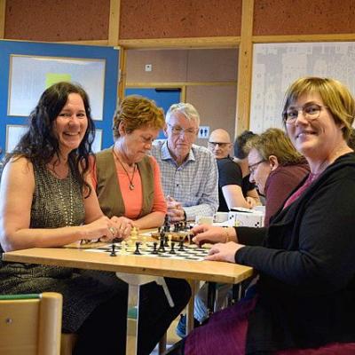 Kaj Engström, riksinstruktör i schack besökte Ö-vik och utbildade skolpersonal för skolbarn i tioårsåldern under en dag. Tjugo intresserade från kommunens alla hörn deltog i en givande dag uppe på Skyttis.
