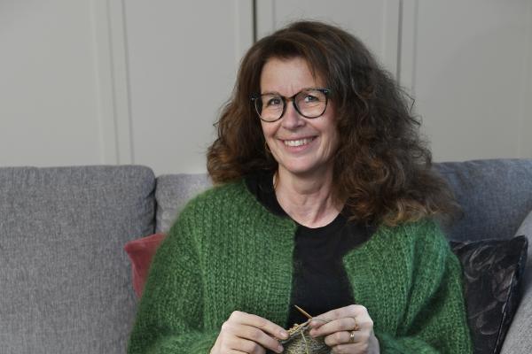 – Handledsvärmare kan man göra på en kväll, säger Charlotte Westberg som alltid har flera stickningar på gång.