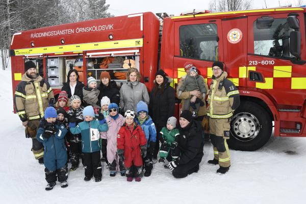 Ett par veckor varje år ägnar sig barn och lärare på Faresta förskola åt arbete med brandtema. Sjuan hälsar på samma dag som brandbilen kommer på besök, med ännu mer viktig kunskap att fylla på med.