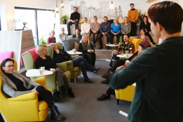 OffCoff – ett omvänt coffice. Med andra ord ett kontorscafé, och inte ett cafékontor – i en lokal som öppnat upp för evenemang och föreläsningar, med hustrubadur och skönt gung inomhus för vuxna.