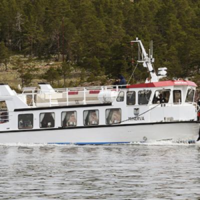 Här kommer hon. MF Minerva som sedan några år tillbaka trafikerar Ulvön, Strängöarna och Trysunda för att avlasta MF Ulvön.Nu helt i kommunägda Örnsköldsviks hamn och logistiks ägo.