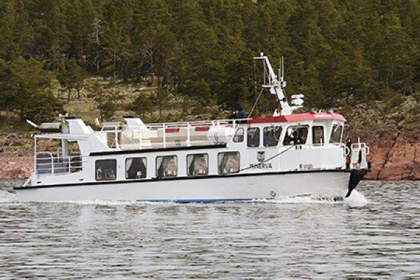 Här kommer hon. MF Minerva som sedan några år tillbaka trafikerar Ulvön, Strängöarna och Trysunda för att avlasta MF Ulvön.Nu helt i kommunägda Örnsköldsviks hamn och logistiks ägo.