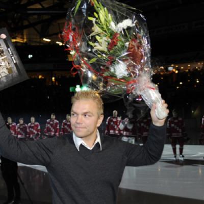 Per-Åge Skröder är en av MODO Hockeys största spelare med sina 600 matcher och 210 mål. Ifjol gjorde han sin sista match och innan matchen mot Leksand blev han hyllad på isen med stående ovationer och fick även en plats i Modo Hockeys Wall of Fame.