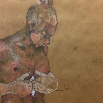 Konstnärsverkstad i Kulturfabriken. Nu ställer han ut under en vecka, med vernissage tisdag 20 juni mellan 18 och 20.