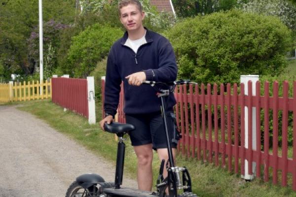 Alla sina barndoms somrar har han tillbringat på Ulvön och nu är han den unge entreprenören som i sommar hyr ut elskotrar.