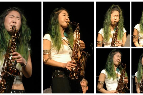 Mångfaldigt prisbelönta saxofonisten Grace Kelly från Boston var på Folkan, där hon bland annat spelade tillsammans med Kulturskolans två barnjazzband.
