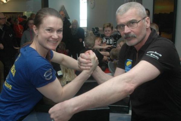Heidi Andersson, med 11 VM-guld i armbrytning, lockade massor av barn och unga till Paradiset under SM i armbrytning.