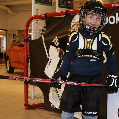 En sprillans ny hockeyutrustning, ja det fick 5-årige Totti Örnebjörk från Ramsele hämta ut idag när Skodafonden hade en av sina utdelningsdagar i Ö-vik.