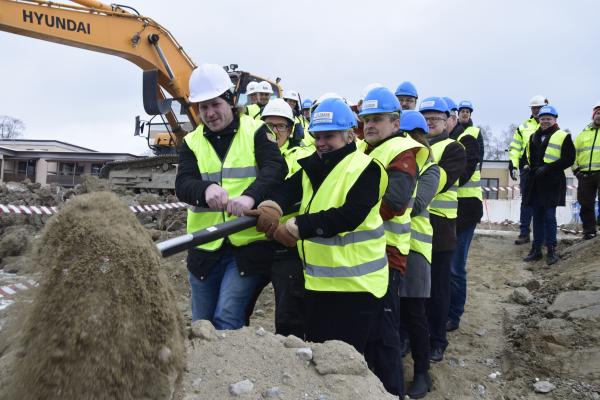 Företrädare för kommunledning och entreprenörer tog idag det det formella ”första spadtaget” till det bygge som ska stå klart 2018 i Själevad och ersätta Rosenborg.