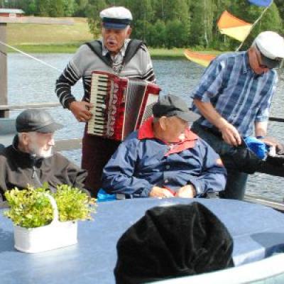 För femte året i rad tar Bosse Sundström, Mats Östman och Kjell O. Berggren med boende från Arnäsgården på ett sommaräventyr med flotte längs Stybbermarkssjön.