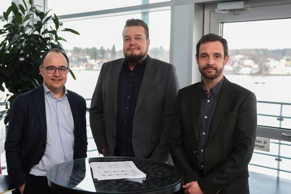 Från vänster Jan Ridfeldt, vd Umeå Energi, John Eriksson, vd Miva samt Robert Hansson, vd Vakin.