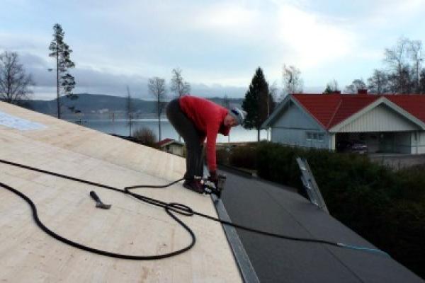 Med taket på plats är det luftspalter och tätning på gång innan vi kan få in lösullen.
