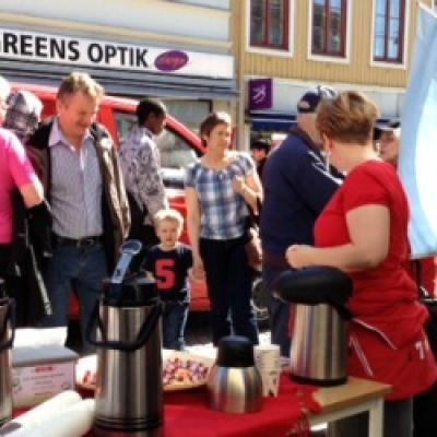 I samband med lanseringen av årets upplaga av Friska Örnsköldsvik är Sjuan och orienteringsklubbarna OK Nolaskogsarna, Skogslöparna och Hägglunds IoFK samt IT-företaget Knowit ute på Storgatan och bjuder på kaffe.