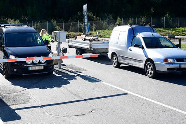 Infarten på Må återvinningscentral där företag kan välja att registrera sig manuellt eller helt automatiskt.