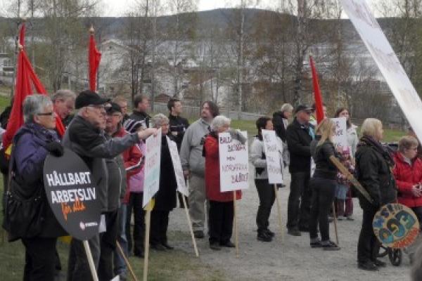 Christina Karlsson var huvudtalare när det traditionsenliga första maj-tåget med cirka 300 deltagare marscherade till Parken i Örnsköldsvik.