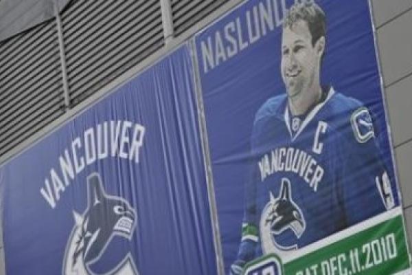 Närmare 19 000 åskådare i ett fullsatt Rogers Arena i Vancouver stod upp för att hylla sin förra lagkapten och stora stjärna. Markus Näslund fick den magnifika hyllning han förtjänade.